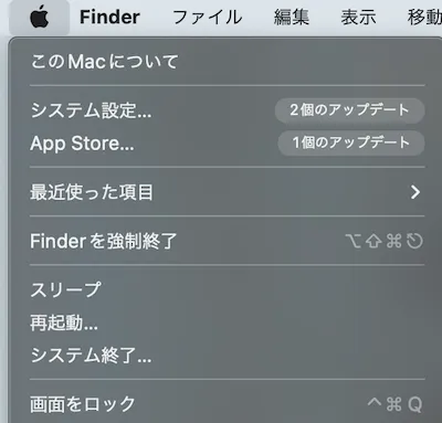 - 画面左上のアップルマークをクリックしてください.