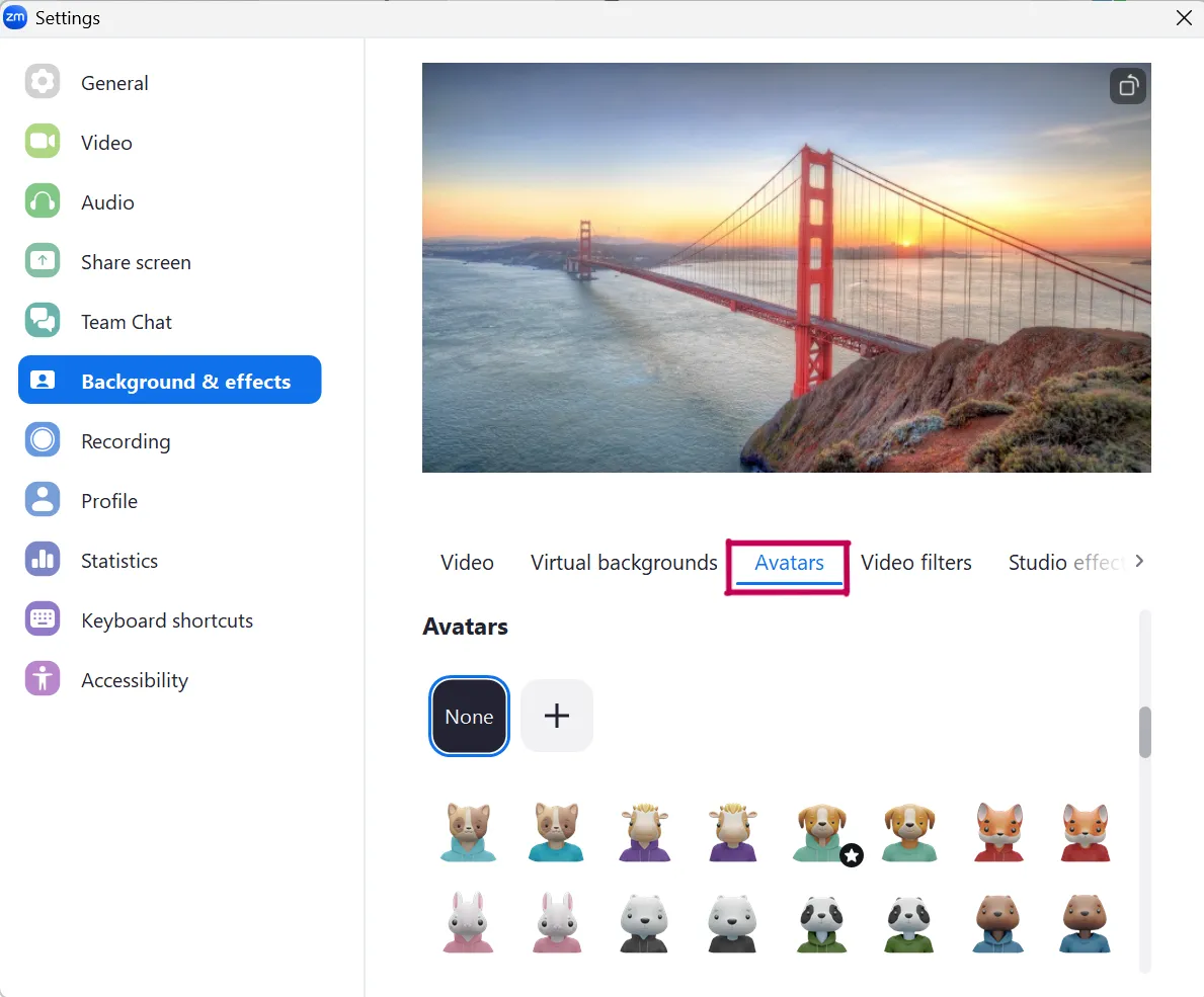 Zoom offers features such as video filters and avatars, which are similar to virtual backgrounds. The video filter function allows you to change the color of your video or to decorate the video and faces with frames, etc. The avatar function displays an animated human or animal figure in place of the user’s face or body when the video is turned on during a meeting. When used appropriately in closed areas such as seminars and clubs, both functions may change the atmosphere of a meeting and facilitate interaction among participants.