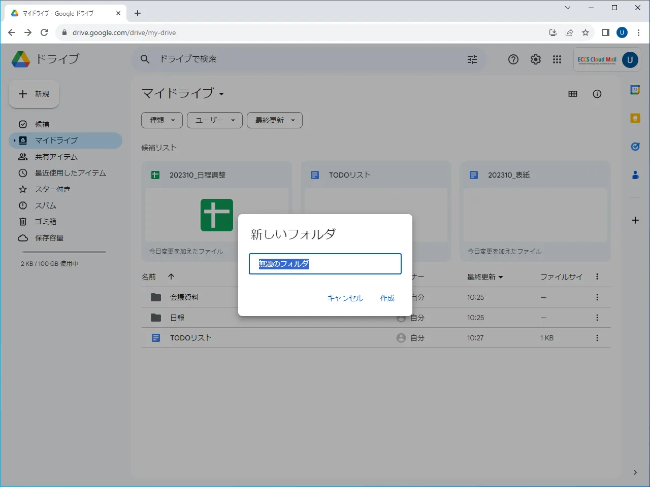 ここでは,Googleドライブ上にフォルダを作成する方法を説明します.
