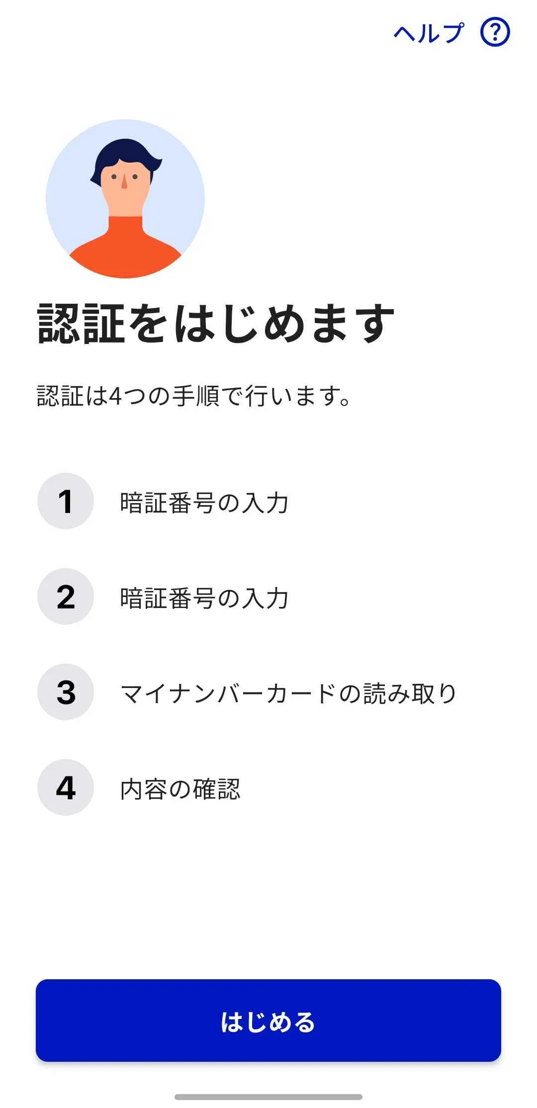 6. 「はじめる」ボタンを押して認証手順をすすめてください.
