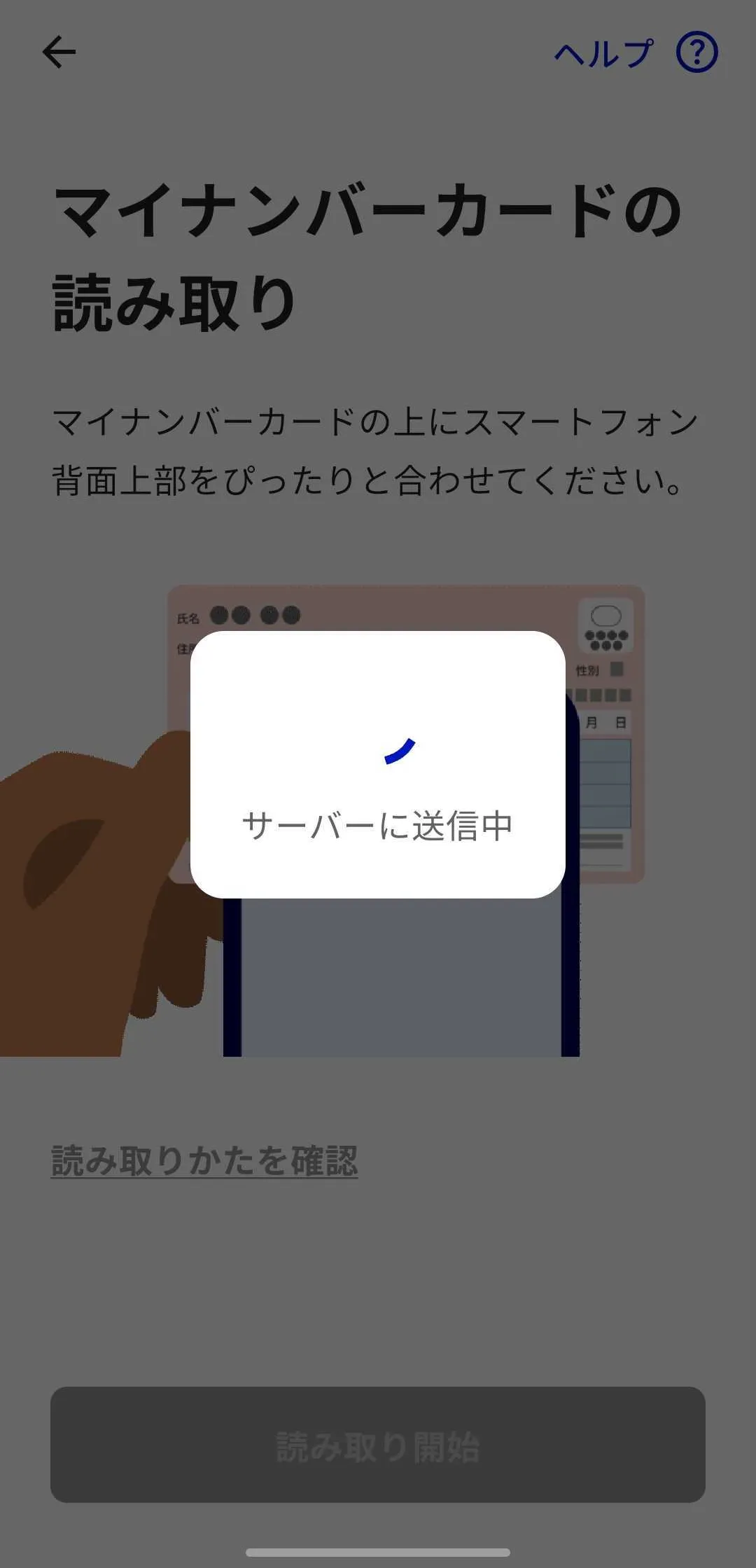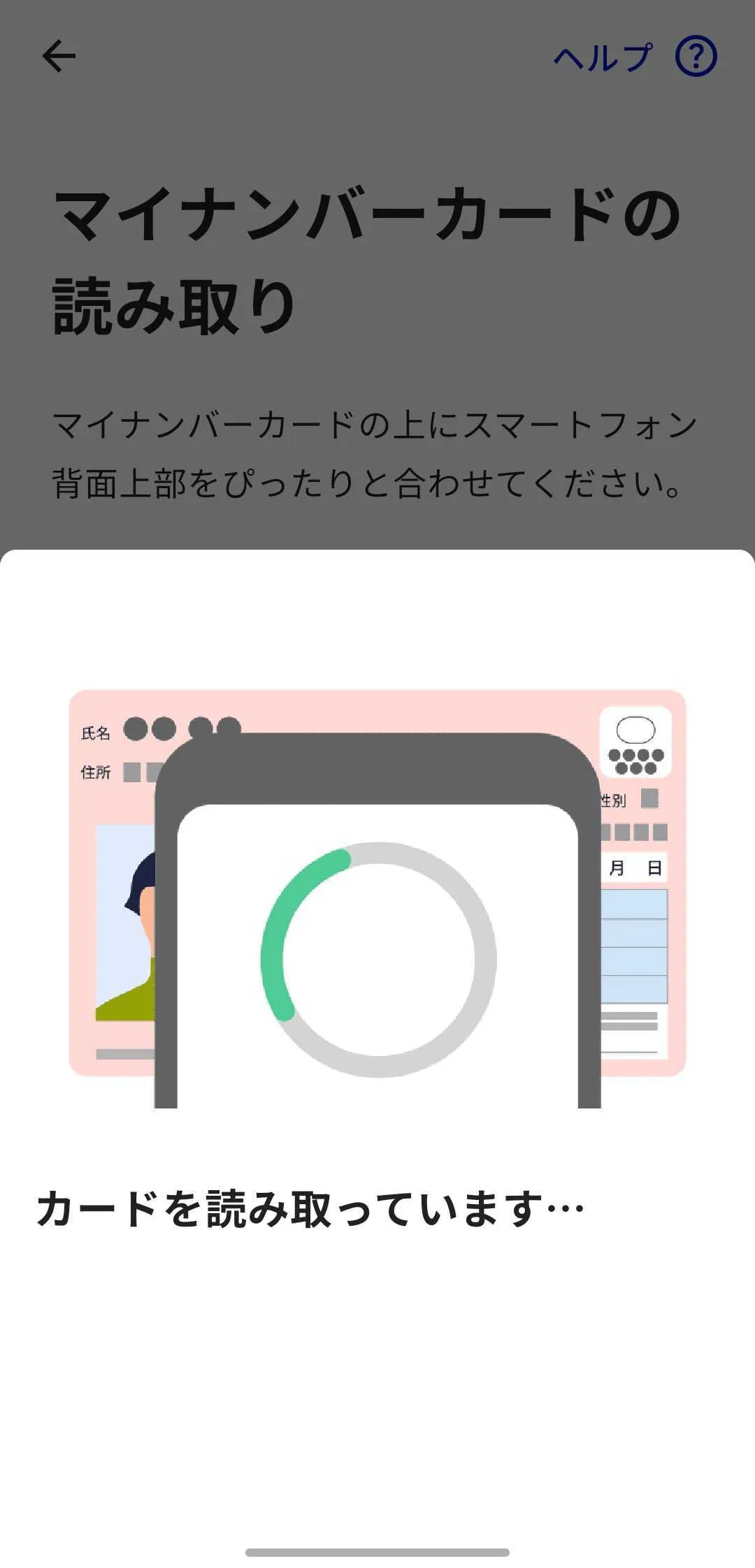 • 「カードを読み取っています…」と表示されている間は,マイナンバーカードをスマートフォンから離さないでください.
