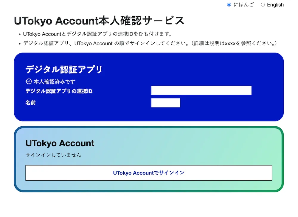 連携状況はUTokyo Account利用者情報確認サイト上で確認することが出来ます.