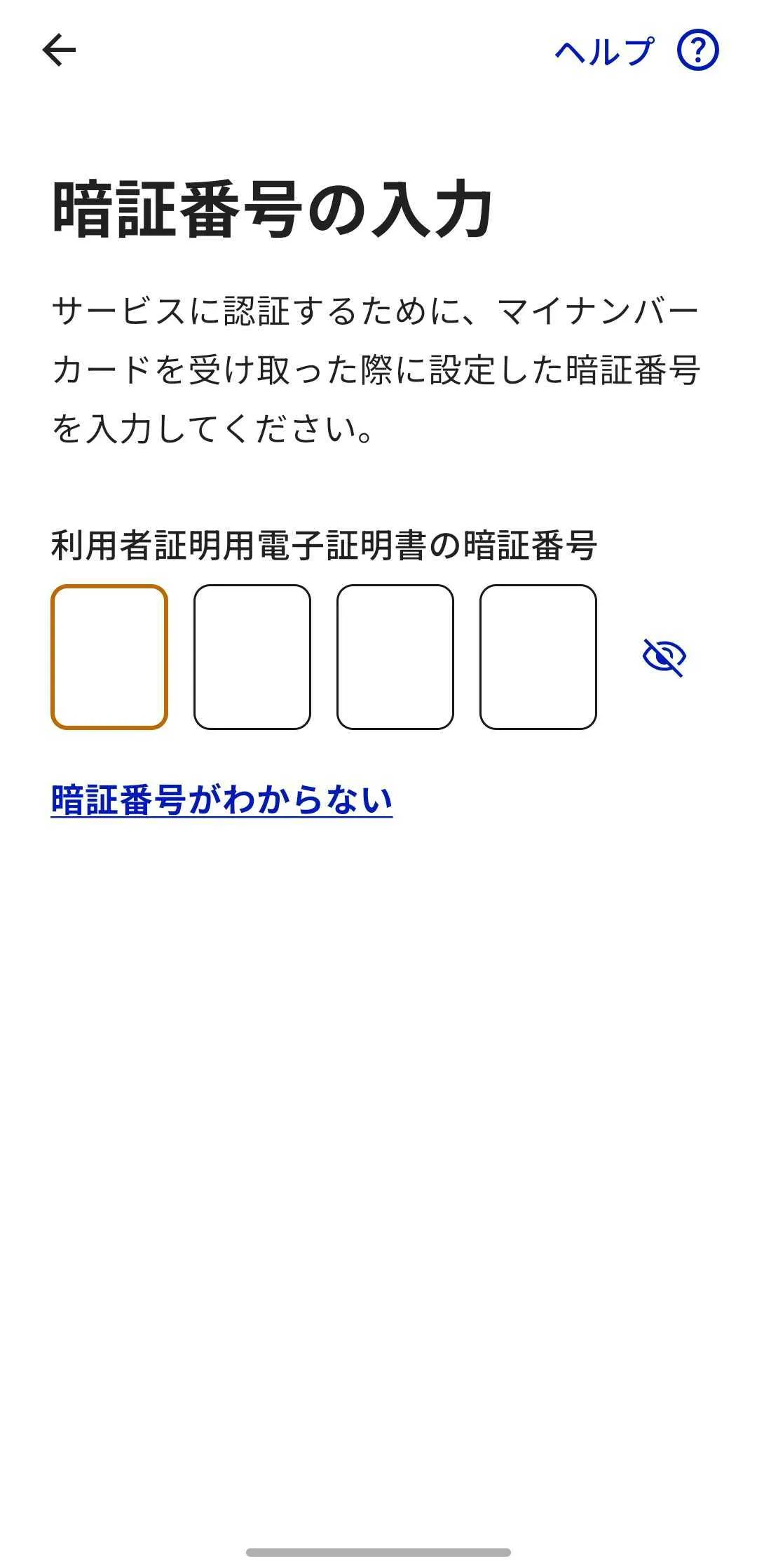 5. マイナンバーカードの利用者証明用電子証明書の暗証番号を入力してください.