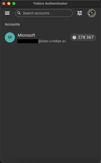 - Yubico Authenticatorアプリにアカウントが追加されていればOKです.