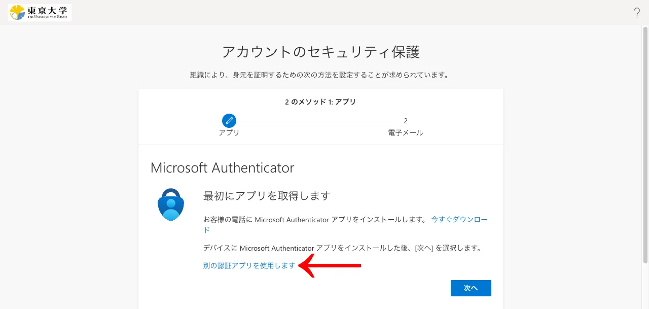 - UTokyo Accountでサインイン時(パスワード入力後)に,デフォルトの本人確認方法で多要素認証の本人確認を行う画面が表示されますが,その画面で「問題がありますか? 別の方法でサインインする」あるいは「Microsoft Authenticator アプリを現在使用できません」というリンクを押してください.