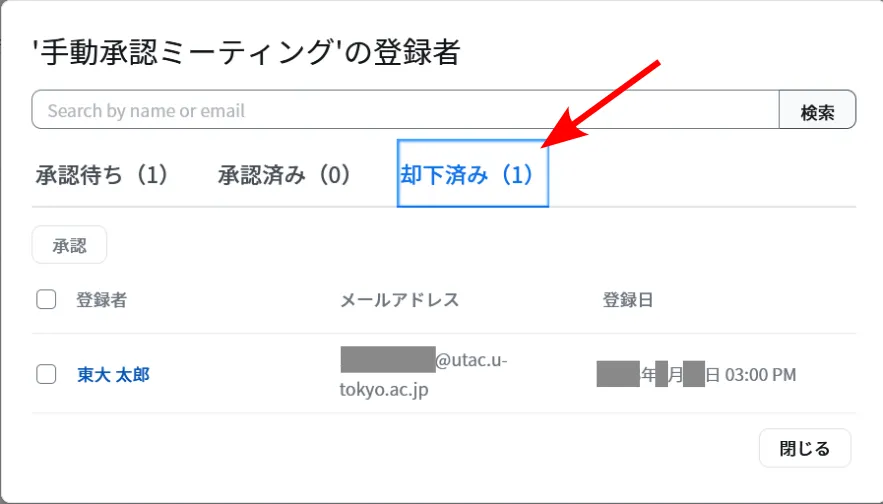 承認したい参加希望者を誤って拒否した場合,以下の手順で拒否の操作を取り消して,参加を承認することができます.